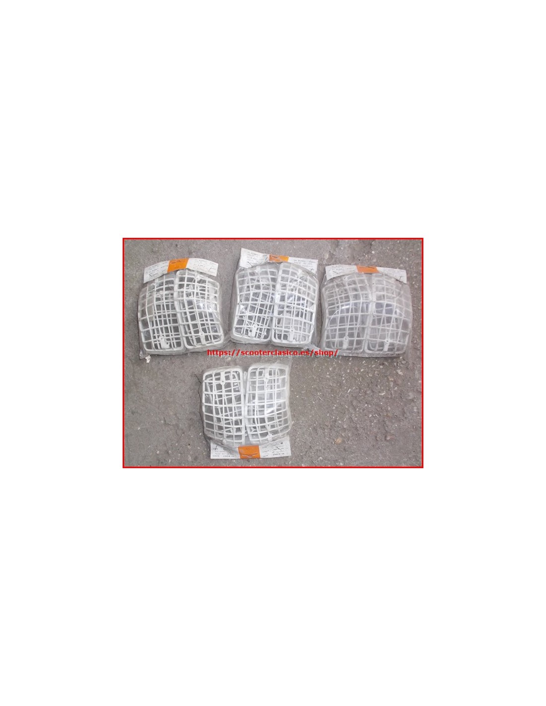 Juego de rejillas de los pilotos intermitentes de la Vespa 200, de color blanco, también sirven para para Vespa PX 125 y 150, es un repuesto nuevo y original de la épcoa