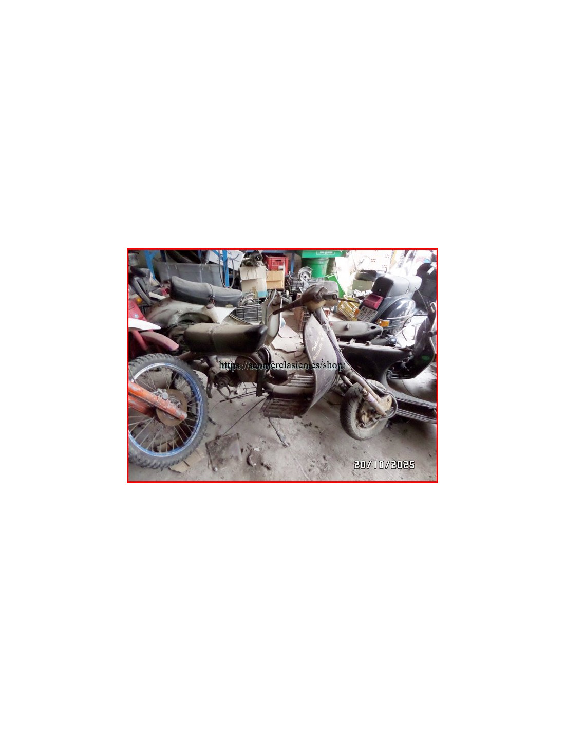 Chasis de Lambretta 200, se manda con todo lo que sale en la foto, se encuentra dado de baja, podemos tener alguna pieza usada para completarla de otras motos