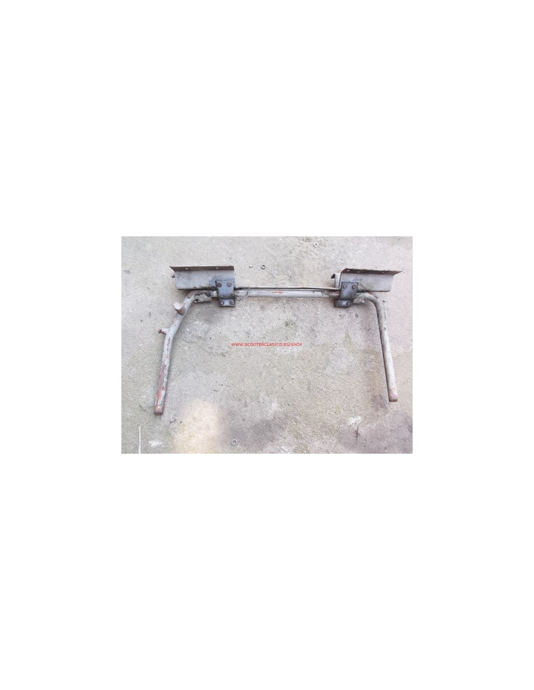 Soporte caballete con pletinas de Lambretta LI 2ª serie, el caballete está doblado, de segunda mano