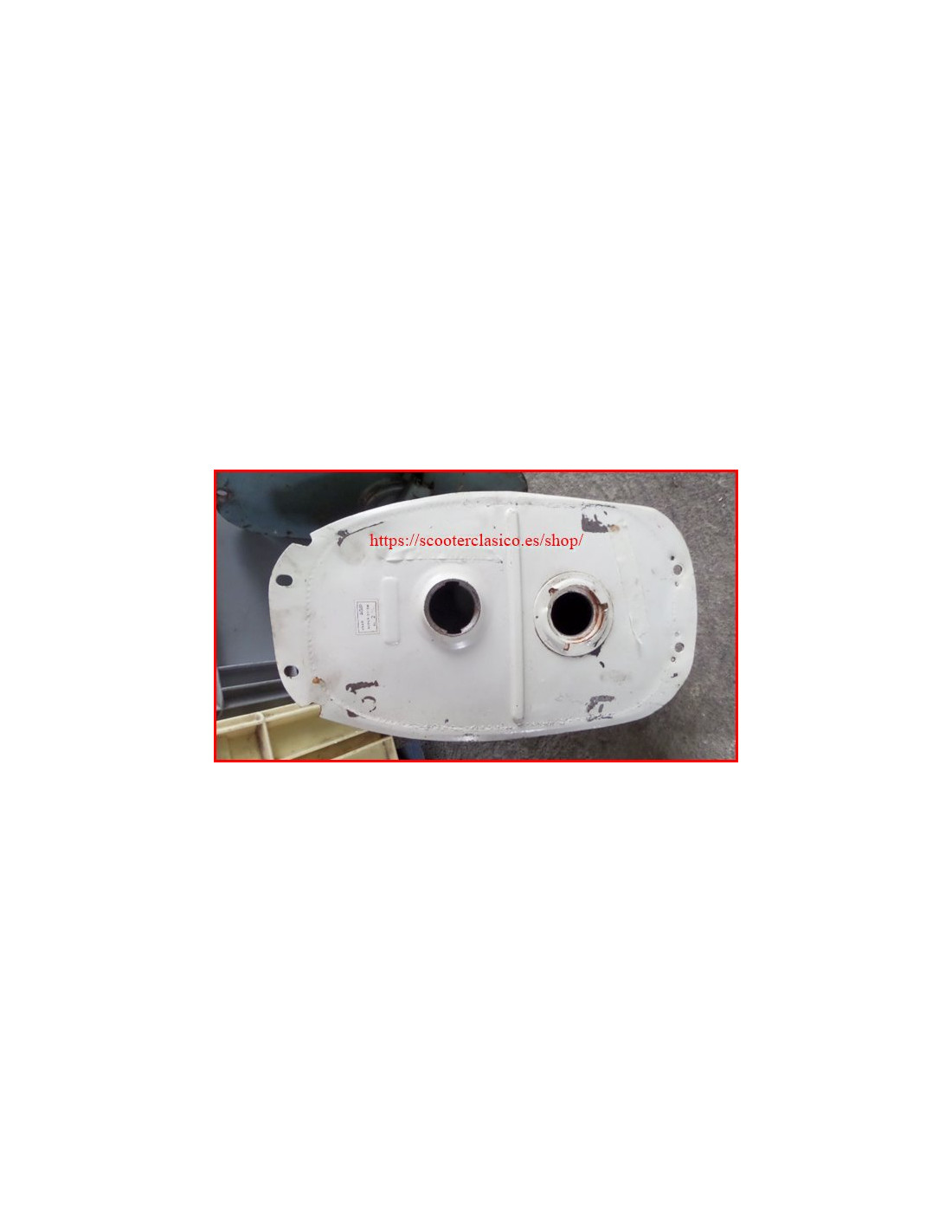 Deposito de gasolina de Vespa 200, para los modelos que llevan aforador metálico como Vespa Iris y de Vespa TX, es de segunda mano el interior tiene oxido superficial, por fuera tiene el color original