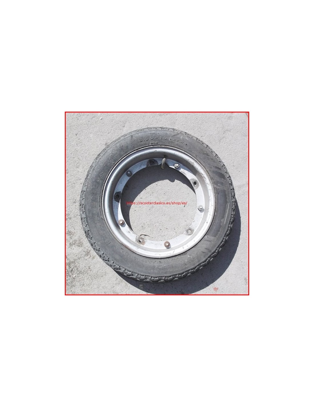Llanta de segunda mano, con la cubierta A MEDIO USO, de medida 300 x 10, puede ser de la marca MICHELIN, PIRELLI u otra marca, idela para la rueda de repuesto