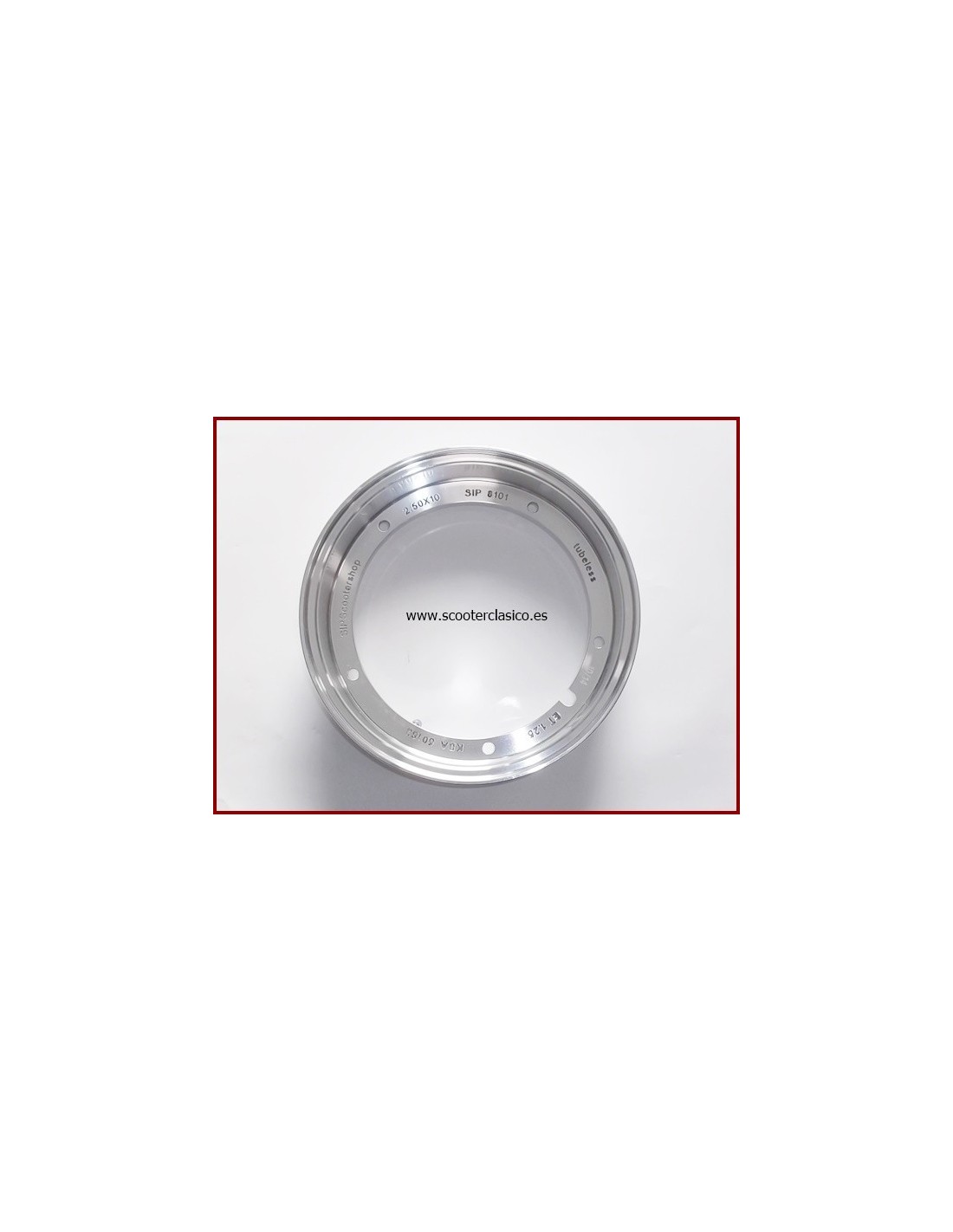 LLanta de Vespa tubeless en aluminio pulido, de la medida 2.10 con diámetro de 10 pulgadas, para las cubiertas de 350x10 , de la marca SIP, además de ser muy bonitas, se gana mucha seguridad al no llevar camara