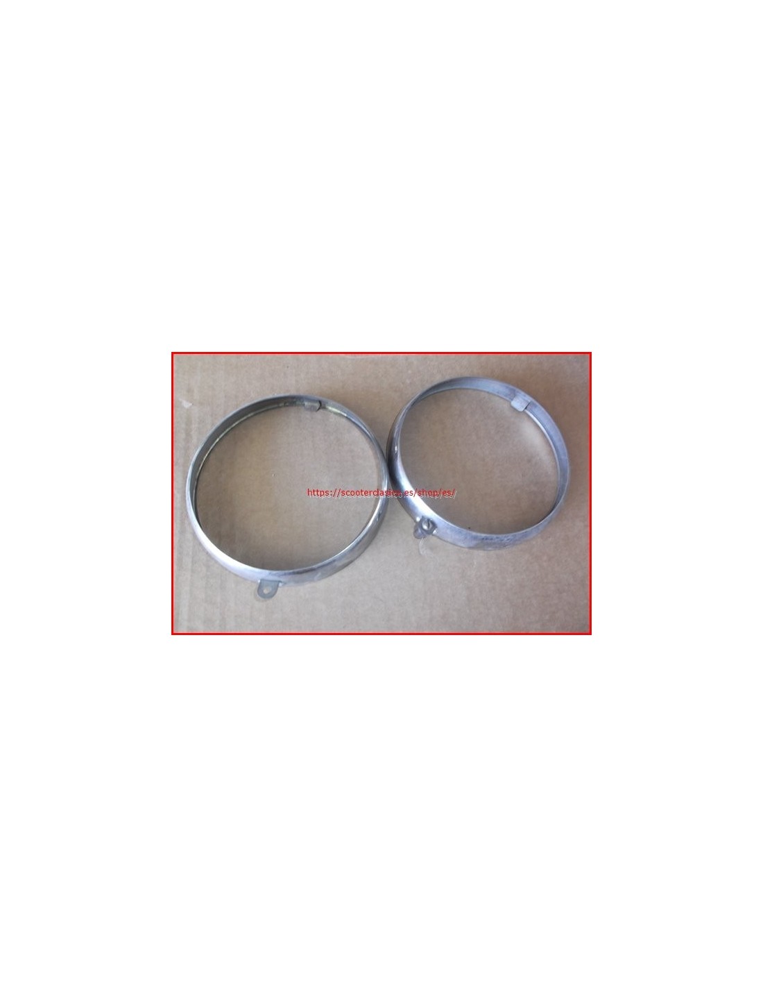 Cerquillo del faro del guardabarros de Vespa de 105 mm de diámetro, es para el modelo del 55, el anterior modelo lleva faro de 95, es nuevo y original de la época, tenemos varios a la venta, por lo que a lo mejor no se manda el de la foto