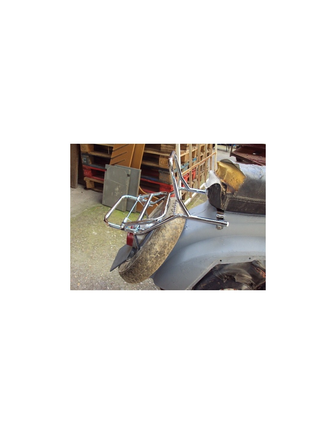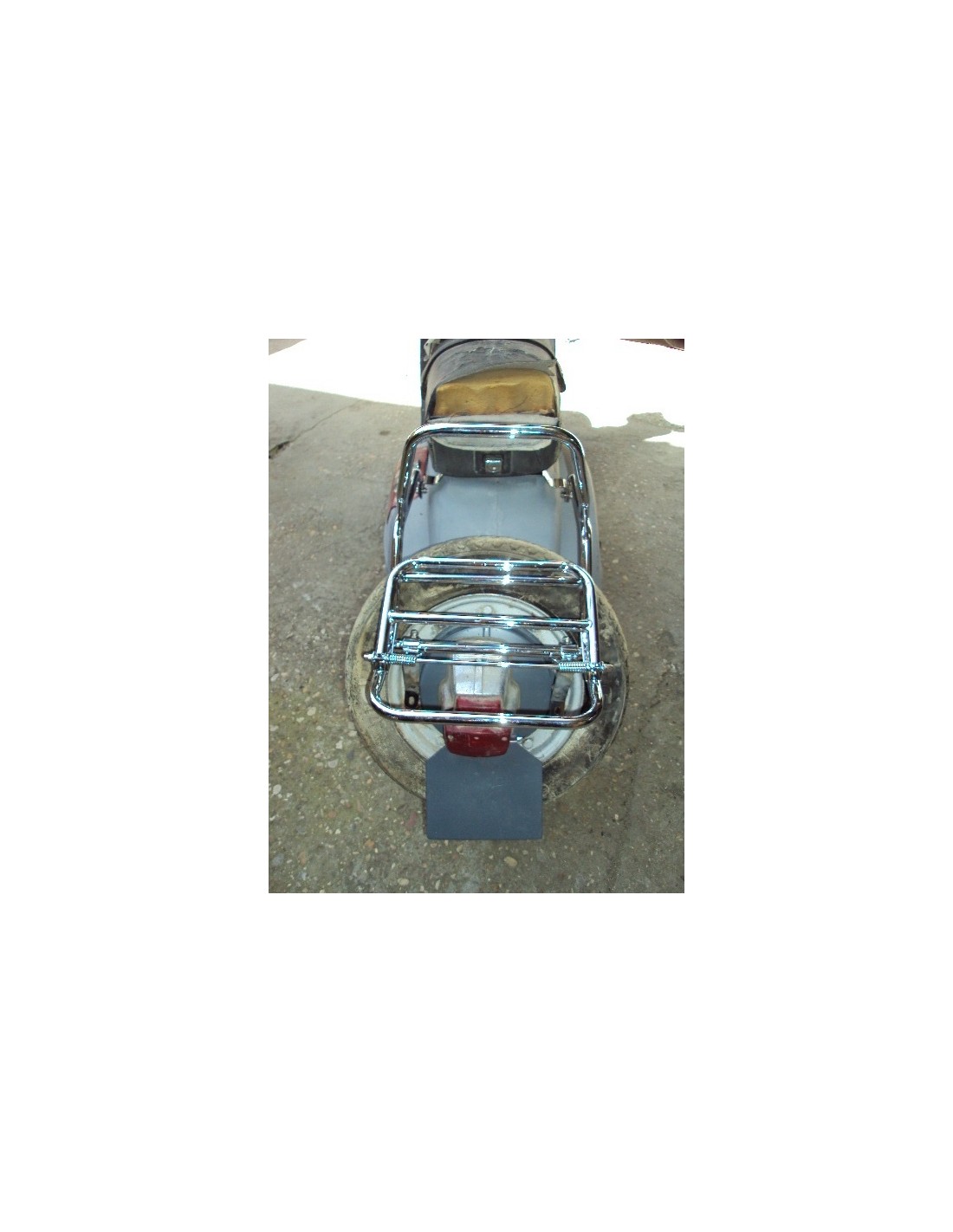 Portabultos trasero cromado para poner en el soporte de la rueda trasera de la Vespa Super