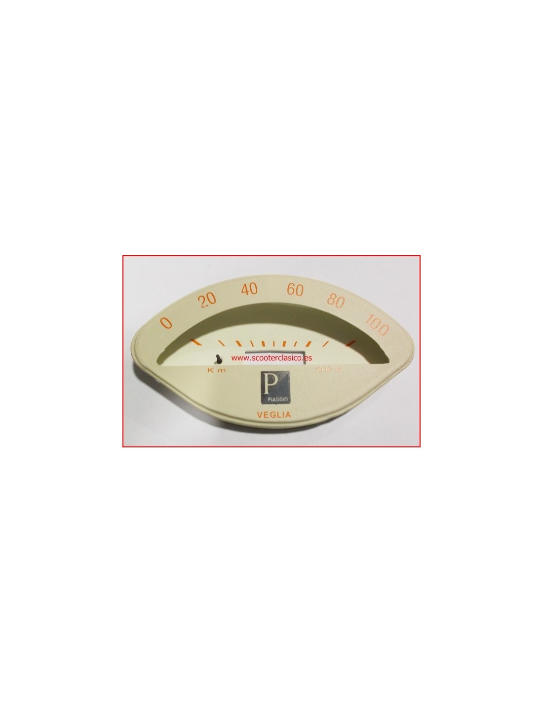 Pantalla de velocimetro de Vespa, para el modelo ovalado, es de 100 km/h, a diferencia de los modelos españoles es la palabra ora (que está sin la H)