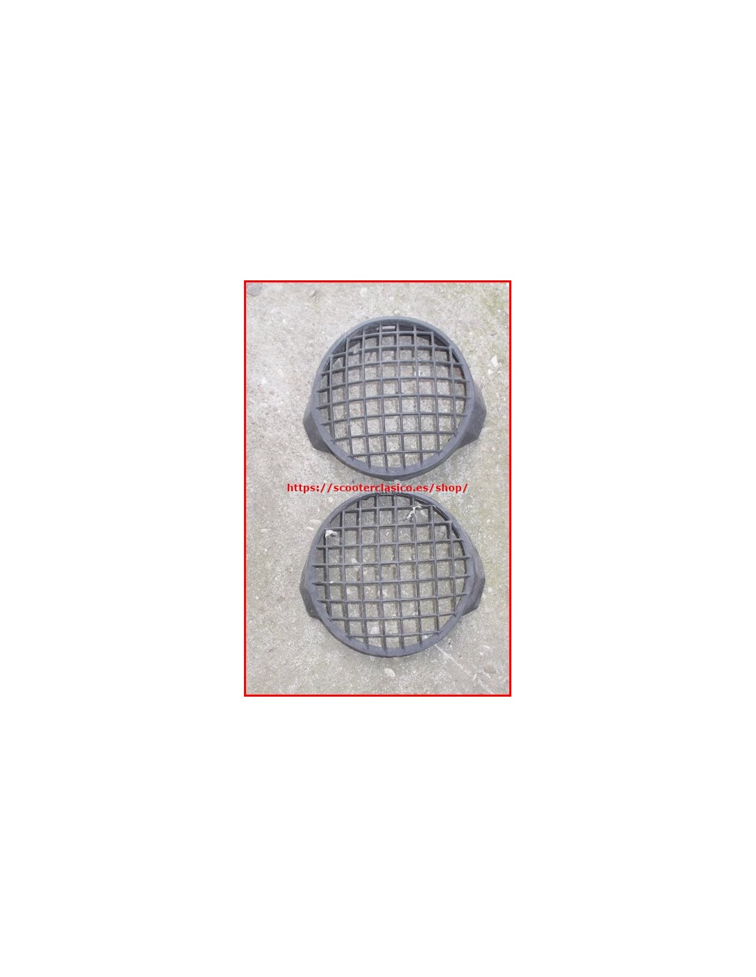 Rejilla en plastico para el faro delantero, es el estrecho, tenemos dos modelos uno que es mas ancho que el otro, de la Vespa 200, es un repuesto nuevo y original de época, también lo tenemos de color blanco y del piloto trasero
