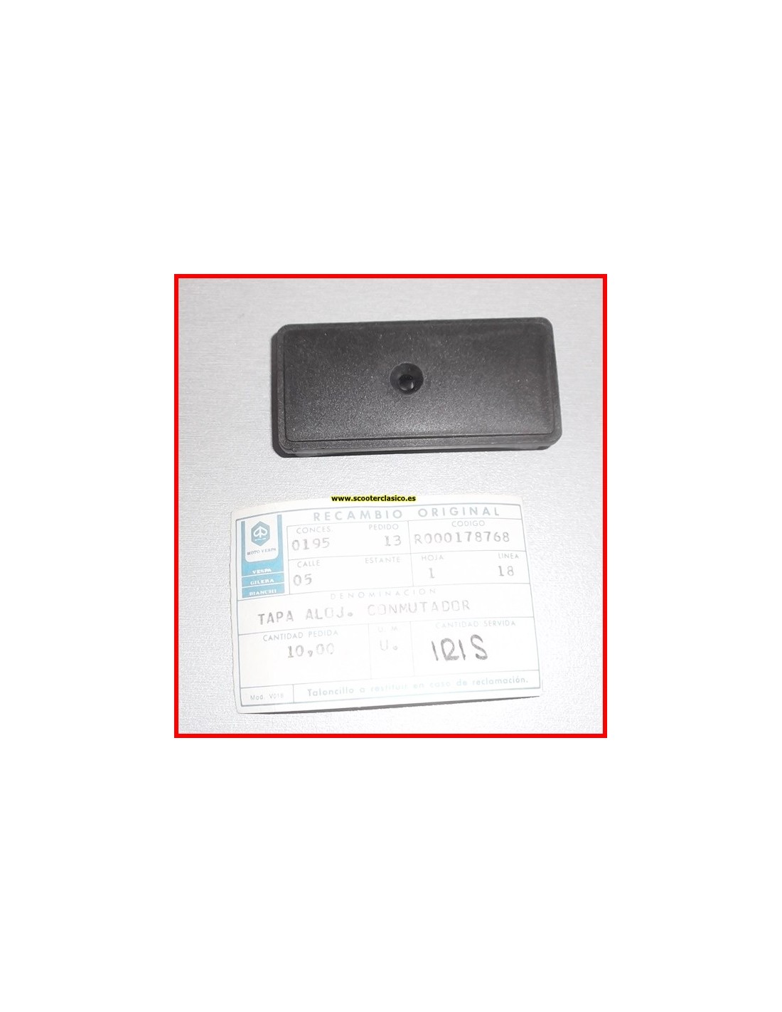 Tapa ciega del interruptor, generalmente se suelen poner en el soporte del interruptor de intermitencias para quitarlas, es un repuesto nuevo y original de la época