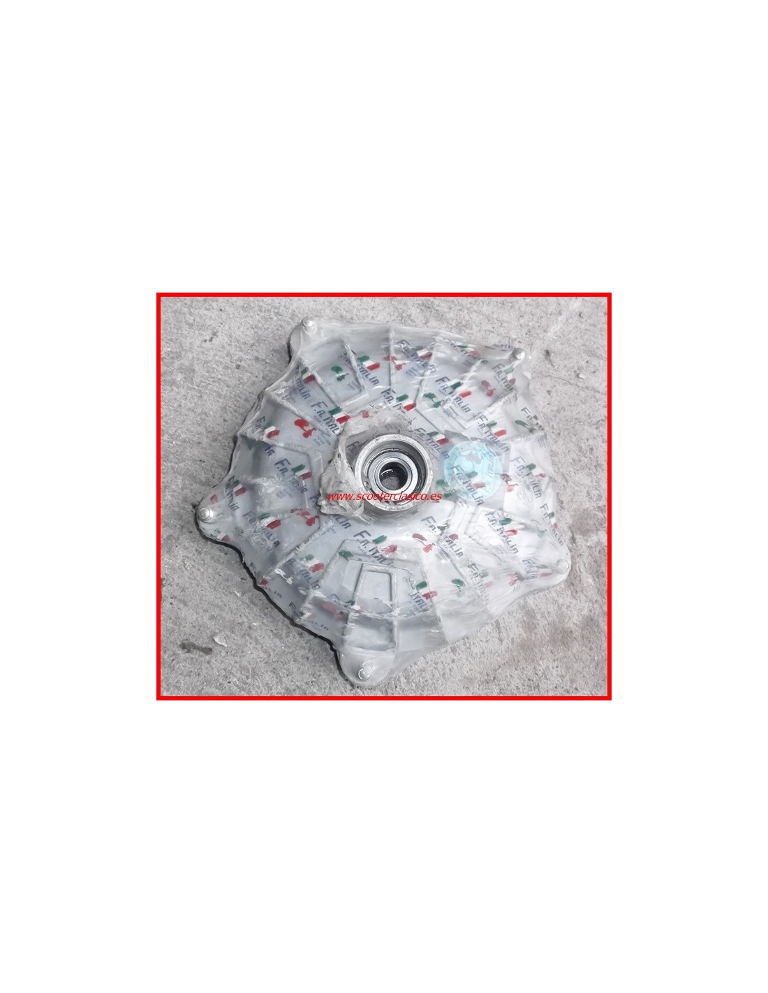 Tambor delantero de la Vespa Iris, de la marca italiana FA Italia, no es liso